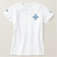 Women's t-shirt is shown in White with Blue embroidered letters USA.