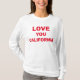 I love this shirt. I had written to the artist asking her if this picture was available on a shirt, and she wrote me back telling me where I could find the shirt. These shirts can be custom made to have a different saying. I loved this saying and went with it. The artist wrote me back later to tell me that she had seen my order go through. How's that for service? Pretty special. It's just as displayed. Perfect!