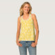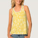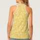 Women's tank top is shown in a lovely yellow and white tropical palms and pineapple print.