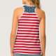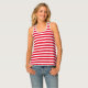 Womens tank top is shown in a cute red and white stars and stripes design.