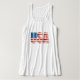 Women's tank top shown in the white color with a patriotic USA Flag print. Customize this tank or buy as is.