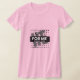 My overall review is that the T-shirt is nice, it fits true to size however the font is significantly smaller than advertised and you can't read it. The printing is unreadable and there is a strain to read it. It does not look like the advertised product. Maybe the shirt color is darker or a larger more visible font should have been used. Photos with and without flash and font is barely legible.