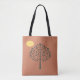 This bag features a warm terracotta background with a soft yellow circle resembling the moon, gently illuminating the stylized tree.