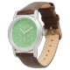 I like the illustrative watch with the lady on it. It is a great reminder that I am blessed and it has a very sturdy leather band. The colors are true and vibrant. Love the color of the Leather also. Very nice.