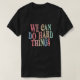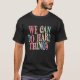 My 11 yo wore adult XL (5’7” 165#). The 8yo is small framed. She wore adult small and tied it in the back. Grandma wore adult large with long sleeve shirt underneath. Tall girl adult medium. Dark haired male adult large. Good quality dark Heather gray, Gildan brand shirt. -it was next up from basic choice and cost about $20 per shirt. Not too thick or thin. Washed and dried well, no major shrinkage. Not see-through. Can wear a bra under it fine. Screen print is just as shown and well done, front and back.