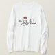I love this shirt. I had written to the artist asking her if this picture was available on a shirt, and she wrote me back telling me where I could find the shirt. These shirts can be custom made to have a different saying. I loved this saying and went with it. The artist wrote me back later to tell me that she had seen my order go through. How's that for service? Pretty special. It's just as displayed. Perfect!