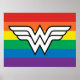 DC Pride | Wonder Woman's iconic logo with layers of rainbow colors inside it.