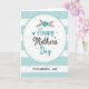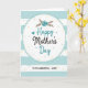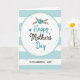 This greeting card features a large, slightly uneven white oval centered on the front, outlined with a dashed stitch-like border that feels gently caring ❤️. Inside the oval, the main line of text reads “Happy Mother’s Day,” with “Happy” and “Day” in soft teal and “Mother’s” in deep charcoal, set in flowing, decorative lettering. Just above the words, a simple floral cluster shows a teal flower with small brown leafy sprigs, like a quiet bouquet offered with affection. A tiny teal heart sits near the message, adding a sweet, friendly touch without taking over the design 🌼. The background is filled with horizontal stripes that alternate muted aqua and white, giving the scene a calm, airy setting. Small pale yellow and light aqua dots are scattered across both the striped area and the central oval, like light confetti drifting around the greeting. Beneath the main phrase, “TO MY WONDERFUL - AUNT” appears in a plain, hand-drawn style in dark lettering, centered inside the oval under the larger text.
