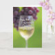 This card features a tall, gracefully shaped glass in the foreground, filled with a pale golden drink that catches the light with a soft sheen. Across the glass, white lettering is placed centrally and reads, “Happy Mother’s Day To my wonderful Daughter in-Law!” in a flowing, decorative style. The background is intentionally out of focus, creating a gentle, intimate mood like a quiet toast shared with someone you truly admire ❤️. In the upper left area, a small cluster of deep red‑purple round fruit adds a romantic, celebratory touch, like a table set for a special moment. Behind everything, a smooth wash of green fills the scene, suggesting a garden or leafy outdoor setting. The natural lighting feels warm and tender, as if the glass is being raised in appreciation between close family or friends 🌼. The fruit cluster sits near the top-left edge while the rest of the background fades into soft green blur.