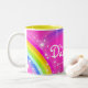 Bright and colourful rainbow daughter mug. Perfect gift for your vibrant and wonderful daughter. Mug reads: “Wonderful Daughter you are our ray of beauty and light”. Mug designed exclusively by Sarah Trett.