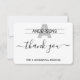 After enjoying excellent hospitality from your friends or relatives it is a must to send the host a note of thanks for the hospitality you received. Write a simple handwritten on the back of this modern and elegant thank you stationary note or use the existing script we've place on the card.