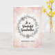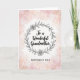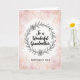 This card features a centered message of appreciation framed by a soft, airy border, with a gentle, affectionate tone that feels like a warm hug ❤️. The main text reads “To a Wonderful Grandmother” near the top in a flowing, elegant lettering style, and “Mother’s Day” sits just below it in a simpler, easy-to-read font. Both lines appear in crisp black, standing out clearly against the light background. Surrounding the words is a thin black wreath of leafy stems and small blossoms, arranged in a way that feels like a quiet bouquet offered with care 🌼. Behind everything, a watercolor-like wash blends blush pink, peach, and creamy tones, fading into each other with soft edges. The subtle shifts in color look like diffused daylight, giving the layout a calm, close-to-the-heart mood without needing any characters or scenery. The botanical line art forms an oval around the lettering, with tiny flowers spaced between curved leaves and fine tendrils.