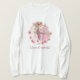 I love this shirt. I had written to the artist asking her if this picture was available on a shirt, and she wrote me back telling me where I could find the shirt. These shirts can be custom made to have a different saying. I loved this saying and went with it. The artist wrote me back later to tell me that she had seen my order go through. How's that for service? Pretty special. It's just as displayed. Perfect!
