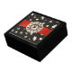 Large black wooden gift box with a black and white Alice in Wonderland print with a red satin ribbon across the middle and a rather curious clock detail. See the entire Wonderland Gift Box collection in the PARTY FAVORS section.