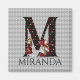 Whimsical Wonderland themed magnet vintage Alice and the Queen of Hearts character color illustrations with large letter / initial M with a black/gold/red card suites fill pattern on a vintage gray harlequin background. Personalize further with customizable name text