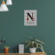 Whimsical Wonderland themed poster features vintage Alice and the Queen of Hearts character color illustrations with large letter / initial N with a black/gold/red card suites fill pattern on a vintage gray harlequin background. Personalize further with customizable name text