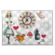 20” x 14” cloth placemat with vintage images of all things Wonderland on a gray and white checkerboard background. There’s a backwards clock, a “Drink Me” bottle, a brass skeleton key, Alice when she was 10 feet tall, the White Rabbit, a disappearing Cheshire Cat, and more.