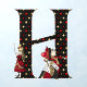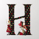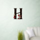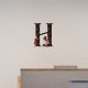 Whimsical wall decal for Alice in Wonderland lovers features large letter H with black/gold/red harlequin pattern and colorized original versions of both the Queen of Hearts and Alice.