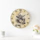 Vintage illustration of Alice in Wonderland's White Rabbit on a faded damask wallpaper background with roman numeral clock face.