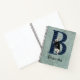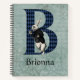 Whimsical bullet journal design for Alice in Wonderland lovers of all ages features capital letter / initial B with black and blue harlequin fill and original White Rabbit illustration that has been tinted, on a distressed vintage floral and handwriting blue tinted background. Personalize with name or other message.