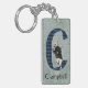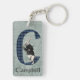 Whimsical design for Alice in Wonderland lovers of all ages features capital letter / initial C with black and blue harlequin fill and original White Rabbit illustration that has been tinted, on a distressed vintage floral and handwriting blue tinted background.