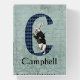 Whimsical design for Alice in Wonderland lovers of all ages features capital letter / initial C with black and blue harlequin fill and original White Rabbit illustration that has been tinted, on a distressed vintage floral and handwriting blue tinted background. Personalize with name or other message