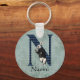 Whimsical design for Alice in Wonderland lovers of all ages features capital letter / initial N with black and blue harlequin fill and original White Rabbit illustration that has been tinted, on a distressed vintage floral and handwriting blue tinted background. Personalize with name or other message
