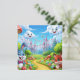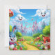 The sky is a bright blue, filled with fluffy, anthropomorphic clouds with smiling faces. A small, cheerful sun-like character and other small, playful figures can be seen in the sky as well. The overall style is bright, colorful, and very child-friendly, evoking a sense of joy and adventure in a magical land.