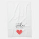 It's the merriest time of the year, so let your kitchen towels remind you! "Oh, the wonders of HIS love!" White towel with red cross-stitched style heart.
