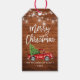 Rustic Wood - Brush Script Watercolor Vintage Red Truck with Christmas Tree Gift Tag - Mason Jars and String Lights