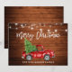 Wood Brush Script Lights Truck Christmas Tree Holiday Card
