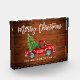 Rustic Wood - Brush Script - Watercolor Red Vintage Truck with Christmas Tree - Merry Christmas Family Name Photo Block