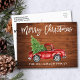 Rustic Wood - Brush Script Watercolor Vintage Red Truck with Christmas Tree - Merry Christmas Postcard