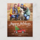 Rustic Wood Brush Script Watercolor Vintage Red Truck with Christmas Tree - Happy Holidays Photo Postcard