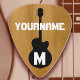 Faux wood with a black guitar silhouette, custom initial and name.