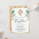 Wood Cross Boho Pampas Eucalyptus Gold Baptism Invitation
