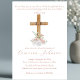 Wood Cross White and Blush Flowers Baptism Invitation