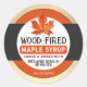 Detailed orange maple leaf coordinates with your wood-fired maple syrup name written on a backdrop of orange. Pale gold grunge metallic border.