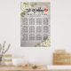 12+ Tables Wedding Seating Chart Poster Templates - Vintage Watercolor Floral and Elegant String Lights on Rustic Wood Texture Background.