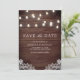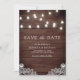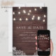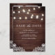 Amaze your guests with this elegant save the date featuring beautiful string light bulbs and white lace with QR Code for wedding website on a rustic barn wood background. Simply add your event details on this easy-to-use template and adorn this card with your favorite photos to make it a unique personalized one-of-a-kind save the date card.