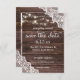 Send a save the date card to get your guests ready to celebrate your wedding or party with this wood, lace, and string lights country floral save the date card.