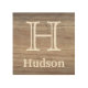 Rustic nightlight with monogram and name over a wood background. Perfect for a woodland baby boy nursery.