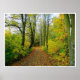 wood path through the trees poster FROM 8.99. This beautiful photograph of a path through the forest or woods was taken in Czech Republic in autumn. The majestic trees and their fall colors are natures own work of art for your walls at home at the trail leads the viewer into the heart of the woodland image.