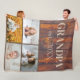 This custom blanket features a wholesome and rustic theme. The background is a wood planks or wooden boardwalk pattern. The title for grandpa is printed at the top with the year established. Four photographs are pictured at the bottom which you can replace with your own photos of the grandkids.