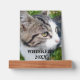 Wood picture ledge with custom pet cat photo image. Trendy home decor ideas for cat lover. Upload your own animal image. Cute kitty with personalized text display.