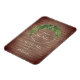 A wedding save the date magnet featuring a botanical design with a wood plank inspired background.