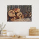 A poster shows timber pile in the middle of a forest.