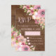 Wedding RSVP cards with rustic brown wood pattern and vintage pink watercolor wildflowers.
