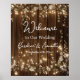 Wood Rustic White Floral String Lights Wedding Welcome Sign - This elegant brown wood and white Welcome sign featuring lovely string lights and white floral can be personalized with your Wedding information. (the product is not actually made from wood)