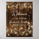 Wood Rustic White Floral String Lights Wedding Welcome Sign - This elegant brown wood and white Welcome sign featuring lovely string lights and white floral can be personalized with your Wedding information. (the product is not actually made from wood)